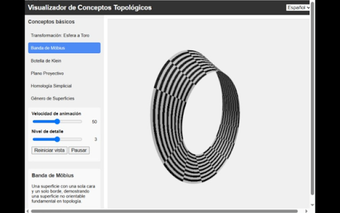 该扩展具有六个基本拓扑概念的互动可视化,包括从球体到环面的变换,莫比乌斯带,克莱因瓶,射影平面,单纯同调和表面属。用户可以通过直观的界面浏览这些概念,调整可视化速度和细节级别。英语和西班牙语的双语支持增强了可访问性,使其成为任何希望加深对拓扑理解的人的宝贵资源。